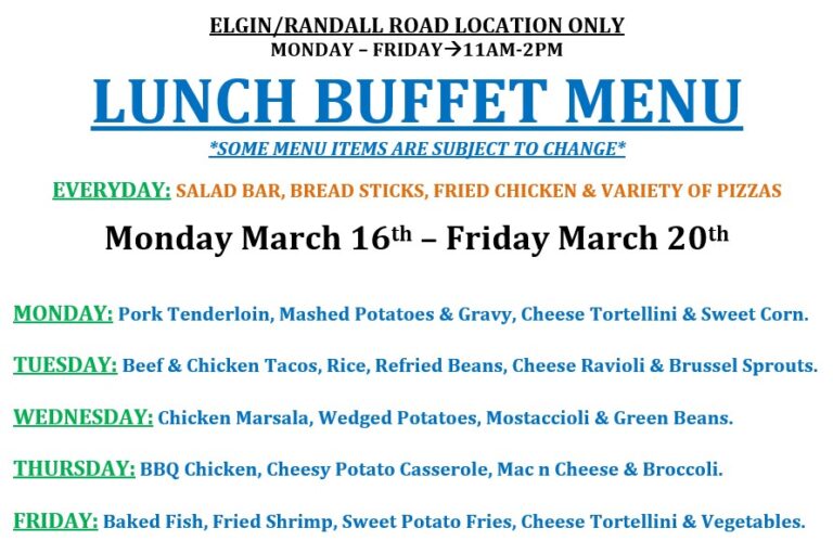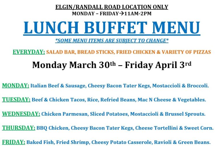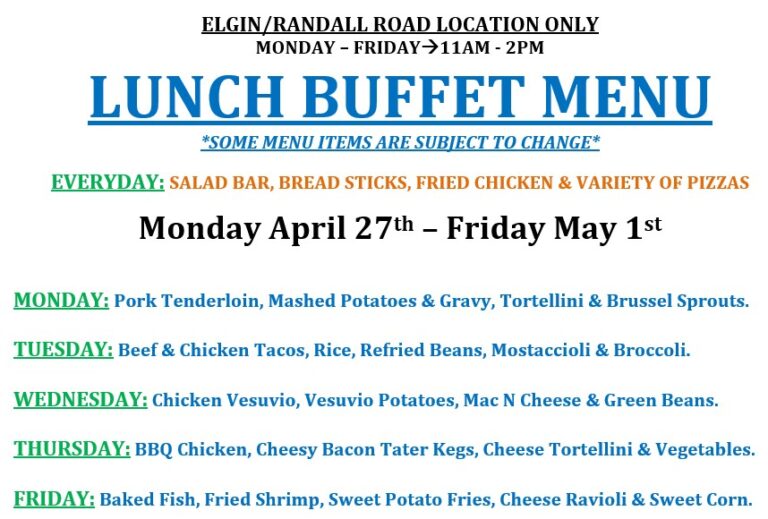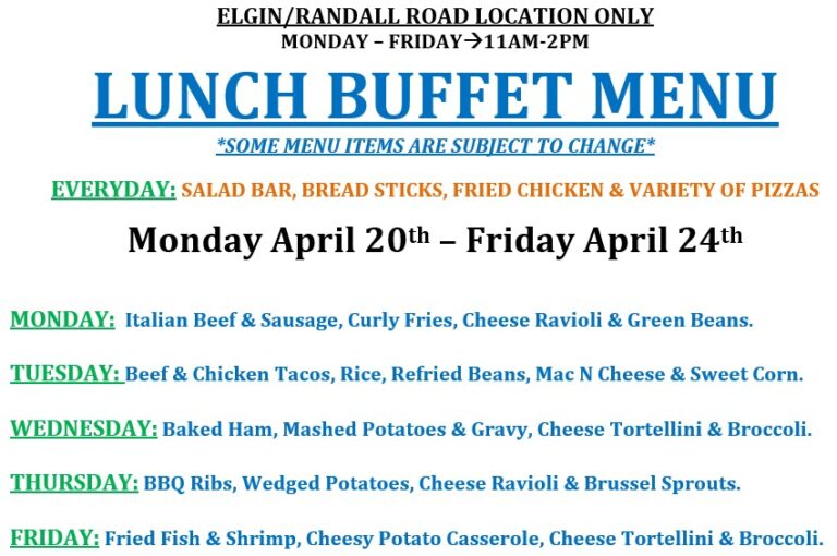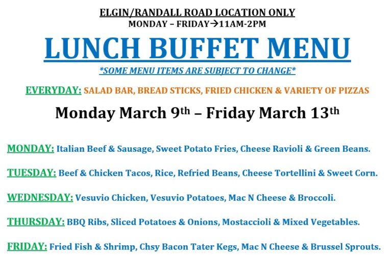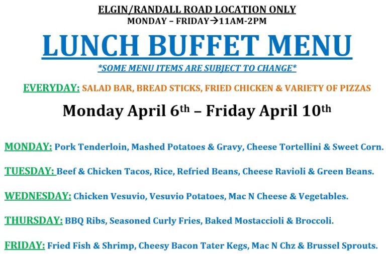 LUNCH BUFFET IS AT OUR ELGIN/RANDALL ROAD LOCATION ONLY